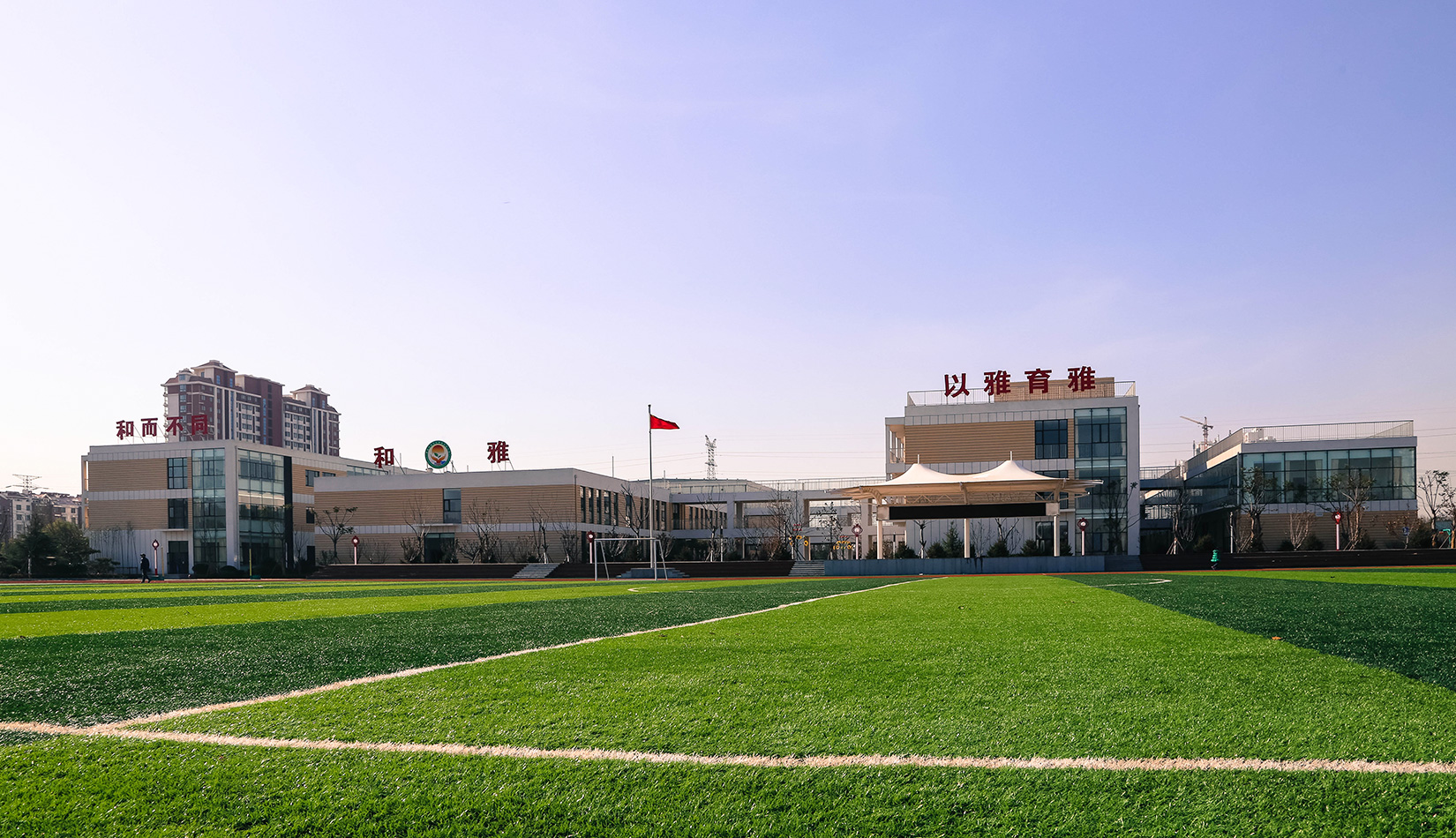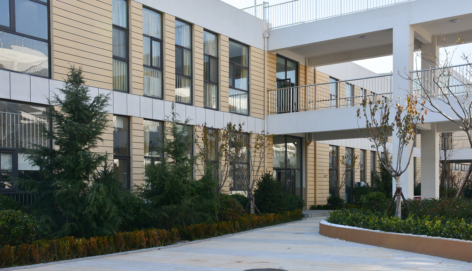 該項目通過幾個建筑單體與架空走廊的穿插連接將整個校區(qū)有機聯系起來,實現了建筑功能的整體性,完善了建筑可達性。形成的中庭空間可成為交流為主的平臺,營造了學習、活動為一體的校園氛圍。建筑外立面以簡潔的現代風格為主,同時表現校園文化,主要采用黃色與白色真石漆形成色彩對比,在教室南立面、樓梯間、就餐區(qū)等采用整體通透的玻璃幕墻與實墻形成虛實對比,形成簡潔而不失活潑的建筑風格。利用借景等手法進行室外綠化設計,整體打造一個高品質的學校環(huán)境。
