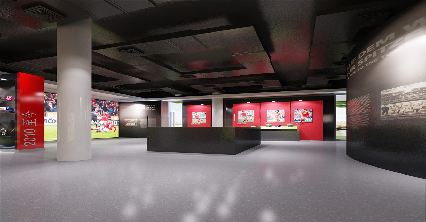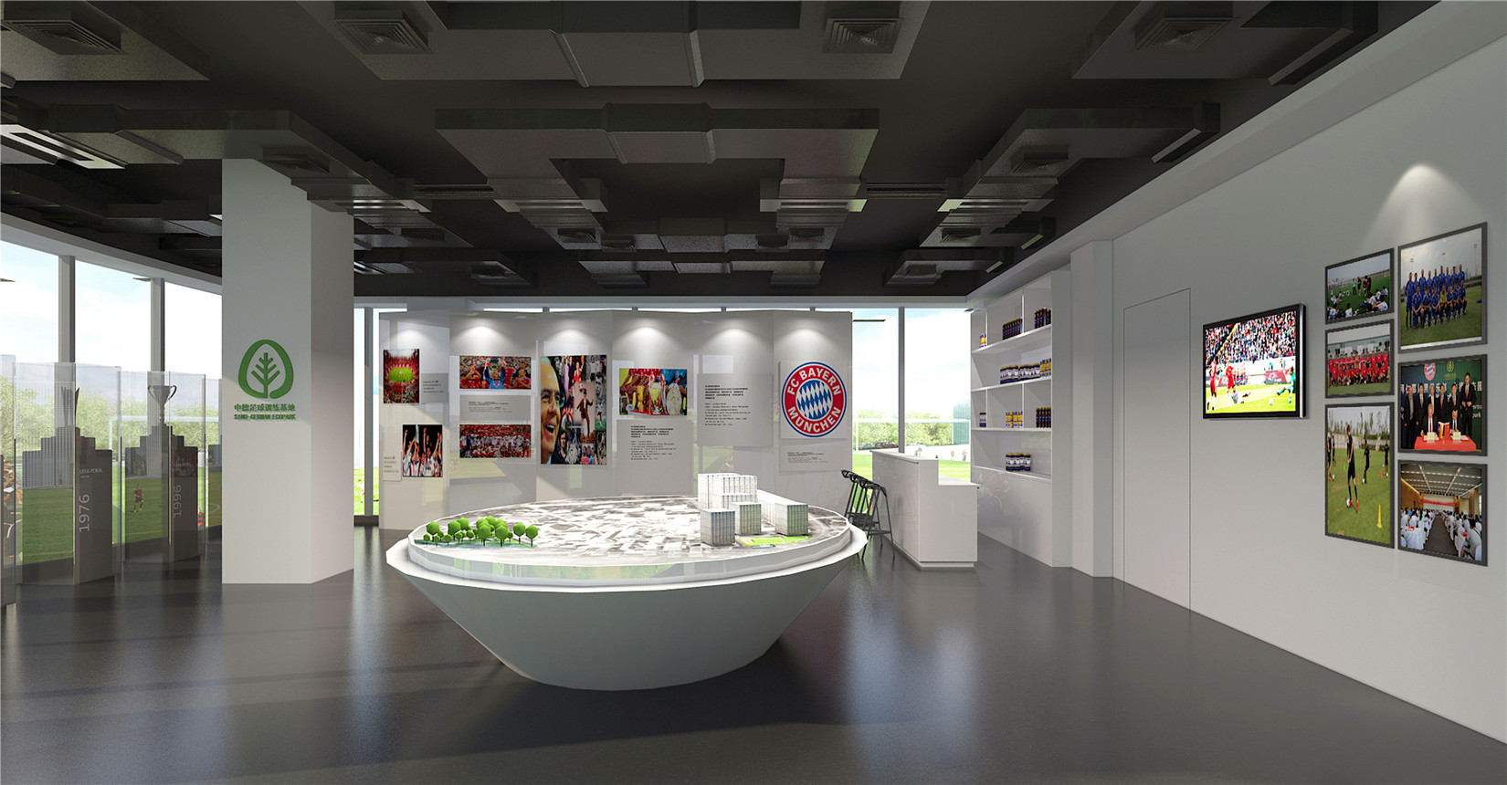 本次設(shè)計方案運用后現(xiàn)代主義風格的設(shè)計手法來展現(xiàn)中德兩國足球運動的歷史及發(fā)展。迎合當前環(huán)境下中德兩國在足球產(chǎn)業(yè)方面進行的交流與合作,是中德體育促進足球培訓、商務推廣的窗口平臺,向人們展示足球精神的人文內(nèi)涵與魅力。
