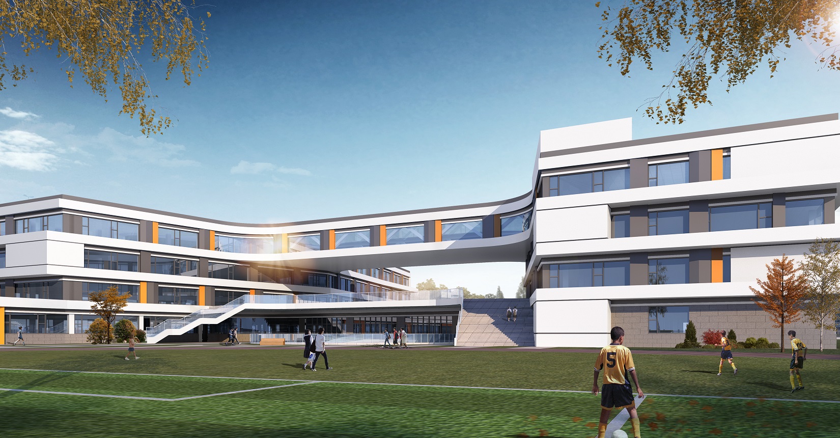 項(xiàng)目設(shè)計以“書籍”和“階梯”為靈感,將教學(xué)樓以退臺及錯落的形式展示“書籍”和“階梯”的理念,設(shè)計現(xiàn)代化“書本”校園,希望學(xué)生們在讀書中成長。