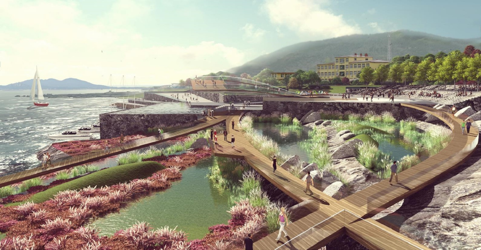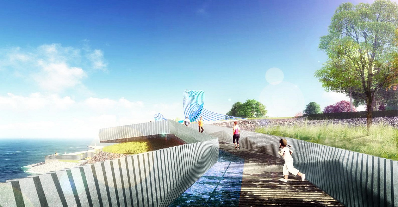 該項目以露天海洋科技博物館為設(shè)計理念,打造一個集生態(tài)保育、展示教育、科學科普、交流傳播、旅游觀光等功能于一體的國家級愛國主義教育基地。設(shè)計是以地域性、生態(tài)性、智慧性為指導原則,將整個海岸帶劃分為五個分區(qū)進行設(shè)計,包含了科研、文教、生活三個方面,重塑海洋價值觀,打造一個海洋科技交流平臺。